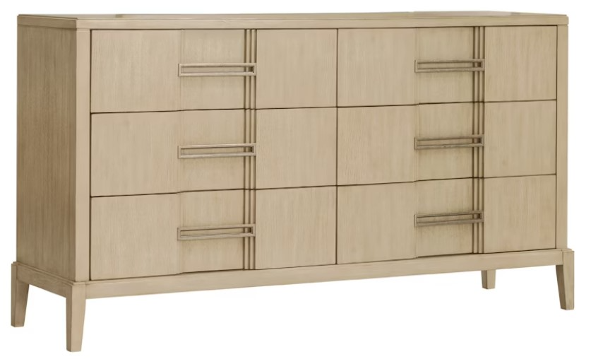 Our Kendall 6-Drawer Dresser combines a modern, transitional style with classic elements. It features a clean, rectangular shape with straight lines and aged pewter hardware, offering a sleek and sophisticated look.Read More