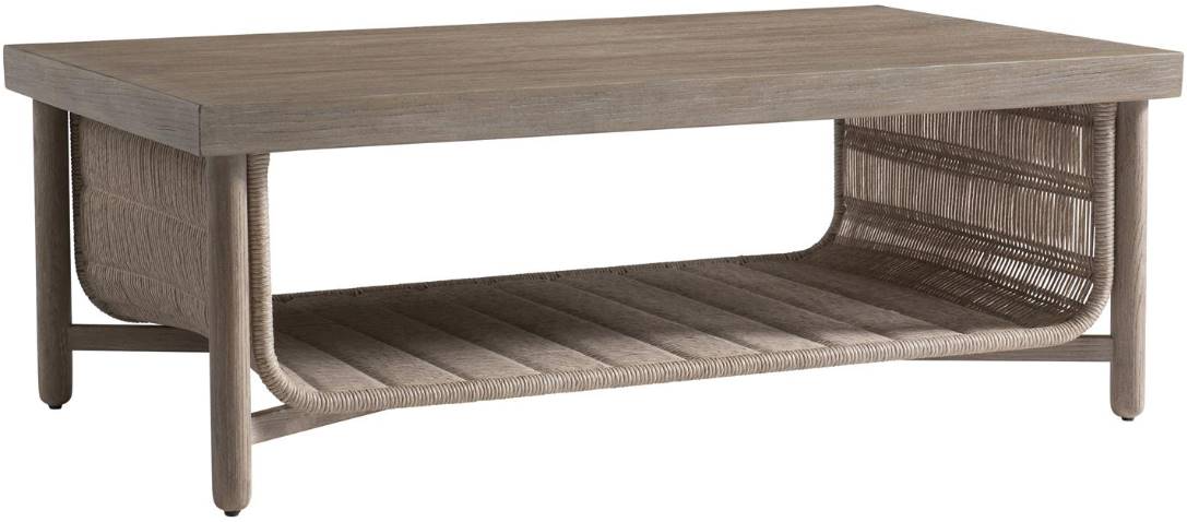 Twisted and woven rope is fashioned into a U-shaped shelf on the unique Santiago cocktail table. Quartered white oak solids and white oak veneers in a Sandbar finish create the top and legs. The gorgeous design is a modern organic look with a singular style.Read More