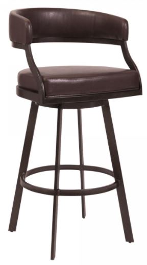 The Saturn’s plush Brown faux leather seat is foam padded and features a 360 degree swivel function, allowing for enhanced user mobility. The Saturn’s unique low back features an upholstered top and offers excellent lumbar support. The straight leg design of this unique barstool includes a round footrest and floor protectors, assuring that the Saturn will not slip on or scratch hardwood or tile floors when moved. Excellent choice for a contemporary dining setting.