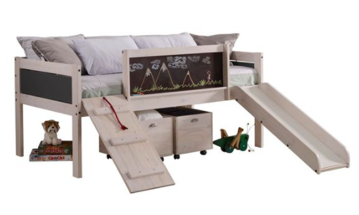 Our Donco kids Twin junior low loft with toy boxes make bedtime so much fun! With add-ons like a rope ladder, slide, and chalkboard, your child will enjoy going to bed. Toy boxes are available for add-on.Read More
