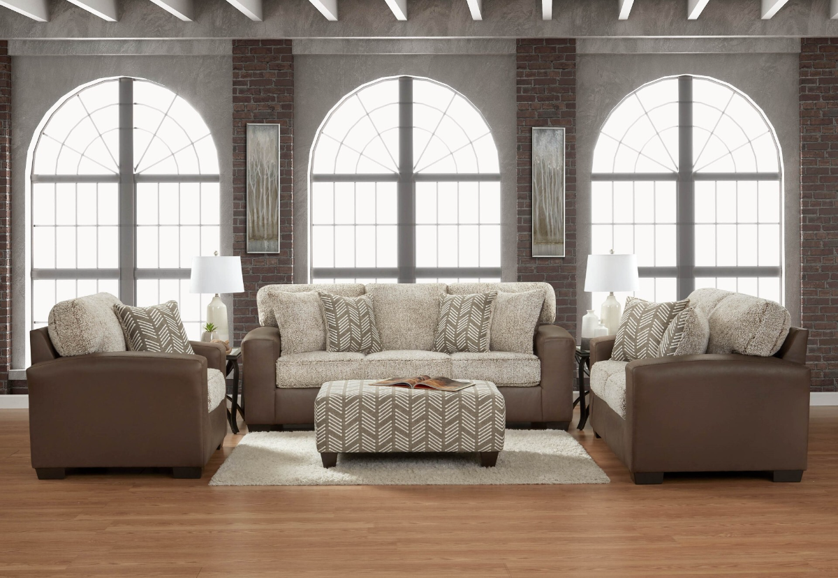 Bring cozy, modern comfort into your home with the Shearling Mocha Living Room Collection. This inviting set features soft, textured chenille seating paired with smooth, mocha-brown faux-leather arms for a stylish two-tone look. Plush cushions and coordinating accent pillows deliver exceptional comfort while maintaining a clean, contemporary aesthetic.Read More