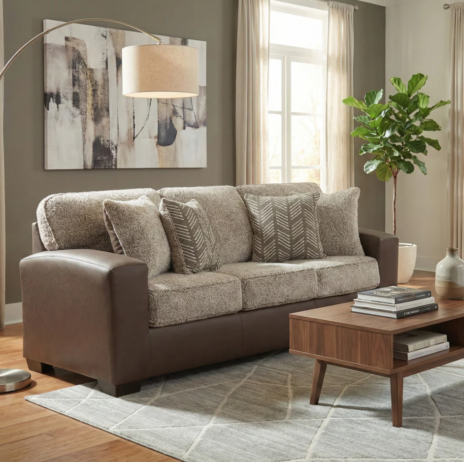 Combine timeless style with everyday comfort. Upholstered in a soft, rich mocha fabric, this stationary sofa brings warmth and versatility to your home décor. With its inviting design and generously cushioned seating, the Shearling Mocha sofa is ideal for relaxing after a long day, hosting friends, or enjoying family time. The durable construction and neutral mocha tone make it a long-lasting piece that complements a wide range of styles, from modern to classic. Simple, stylish, and comfortable, this sofa is a staple piece that blends seamlessly into your home while offering cozy seating for years to come. Sleeper option available.Read More