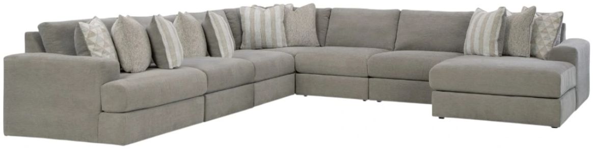 Includes 7 Modular Pieces: Left-arm facing corner chair, right-arm facing corner chaise, wedge and 4 armless chairs