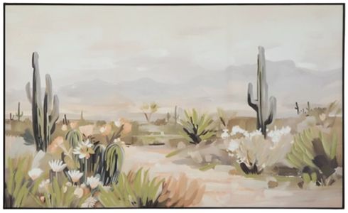 Bring the beauty of the desert into your home. This captivatingly calm wall art showcases a serene landscape, complete with iconic cacti and delicate blooms. Crafted with meticulous detail, the hand embellished canvas is a perfect choice for those seeking a touch of southwestern charm.Read More