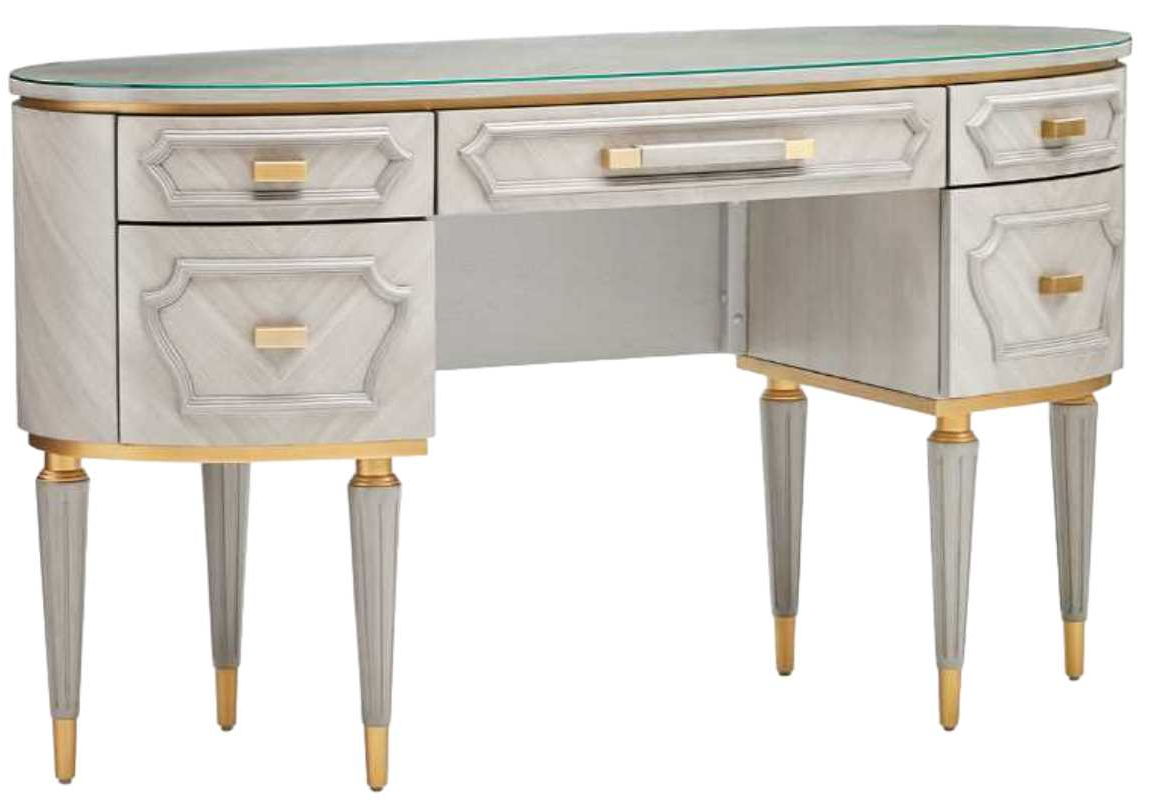 The Saint Charles vanity elegantly serves a dual purpose, blending the luxurious elements of a grooming haven with the practicality of a writing desk. Its polished surface and ample drawer space make transitioning from beauty rituals to writing endeavors seamless and stylish.