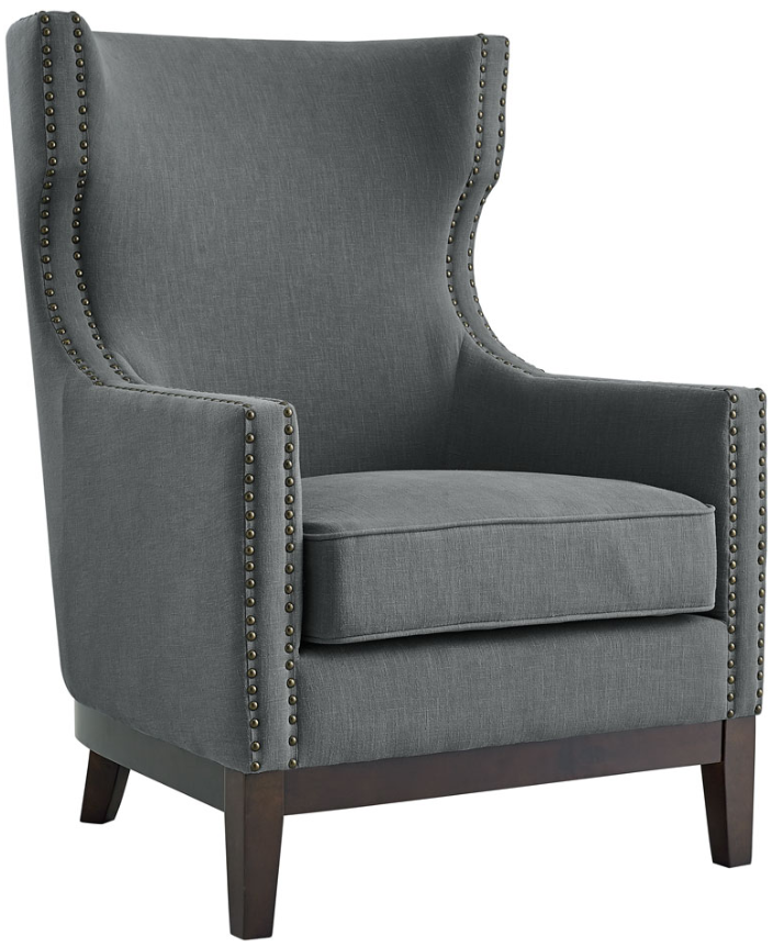 Roswell updates the classic wing-back chair with a more contemporary profile you are sure to love. This is not your father's wing-back chair but today's parlor chair with a linen look and brass nailhead trim. The softly rounded back adds design and comfort while making an interesting presentation even if the chair is floating in the room.Read More