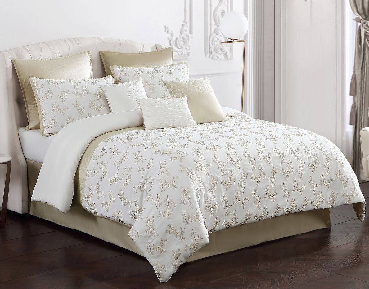 Gold and ivory hues make the Tinsley 9-Piece King Comforter Set a stone cold stunner. The comfortability and beautiful fabric make it a must have for your master suite or guest bedroom and the set will add warmth and a sense of home to your sleep space.Read More