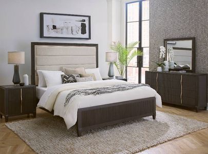 Designed to transition between traditional and contemporary aesthetics, the West End Loft upholstered queen bed is a statement of refined taste. The headboard steals the show with plush upholstery in a neutral, contrasting fabric adorned with horizontal channeling, creating a cozy yet elegant focal point in the room.