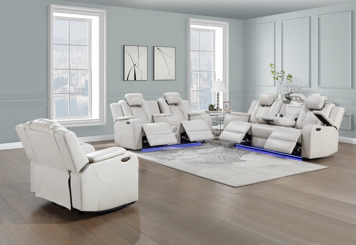 Lay back and relax with the Zane Power Reclining Set. Features built in speakers, multiple reclining settings and luxurious power headrests ensure you'll melt into your seat and never want to get up.Read More